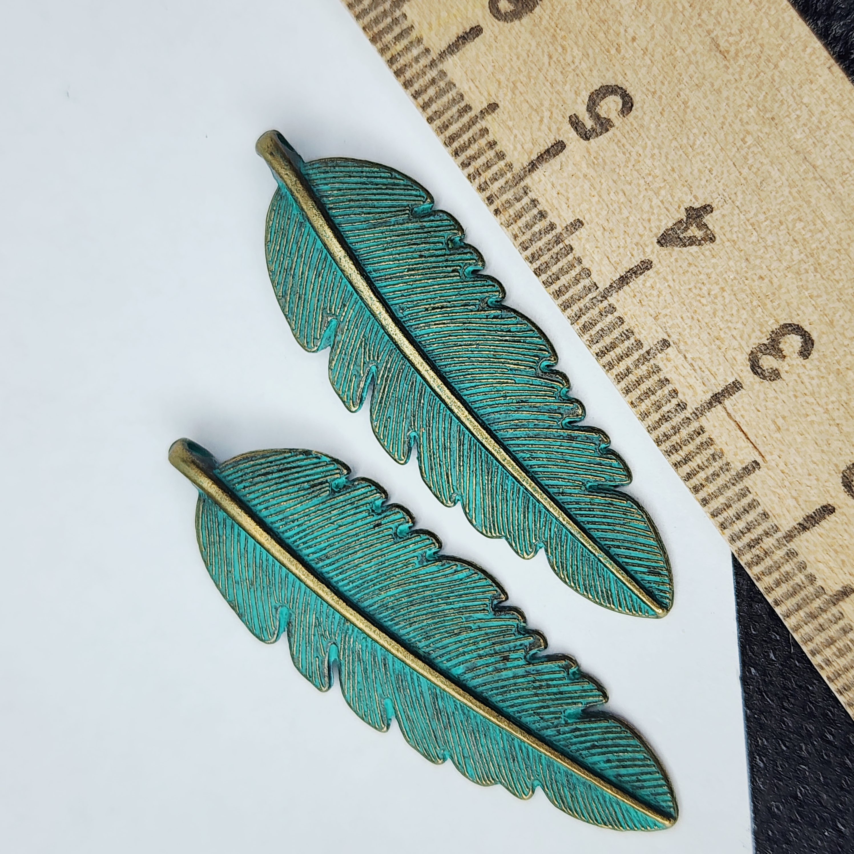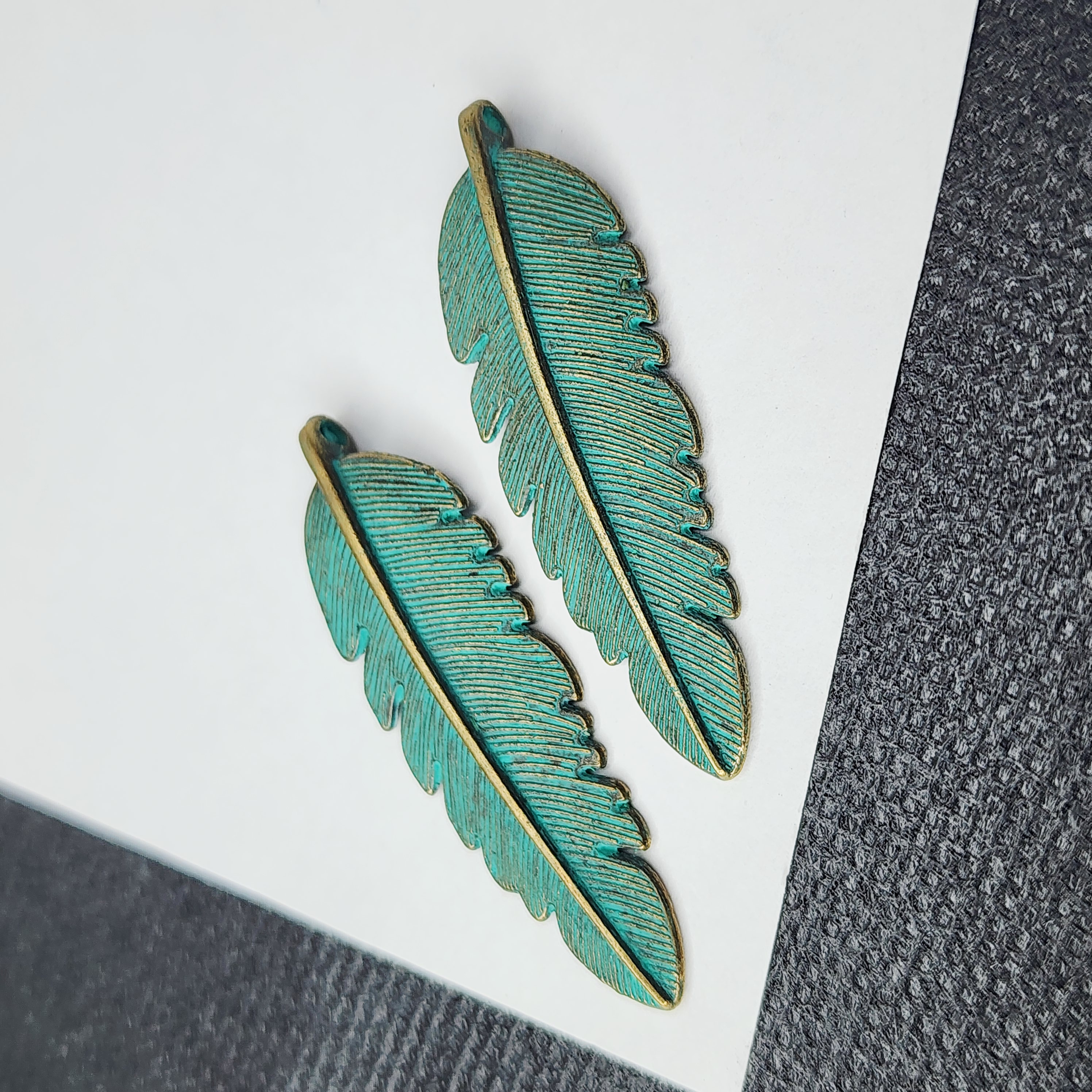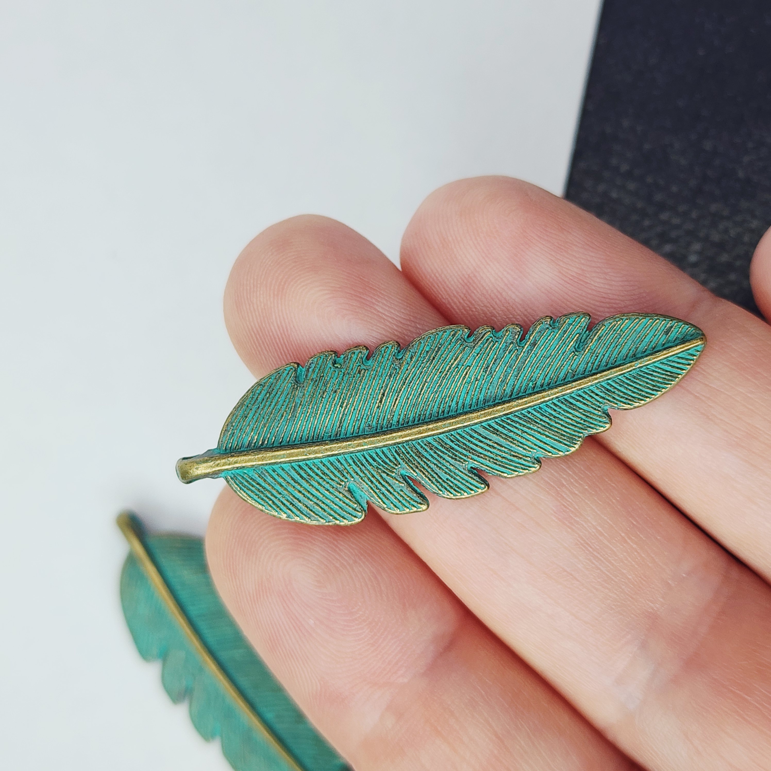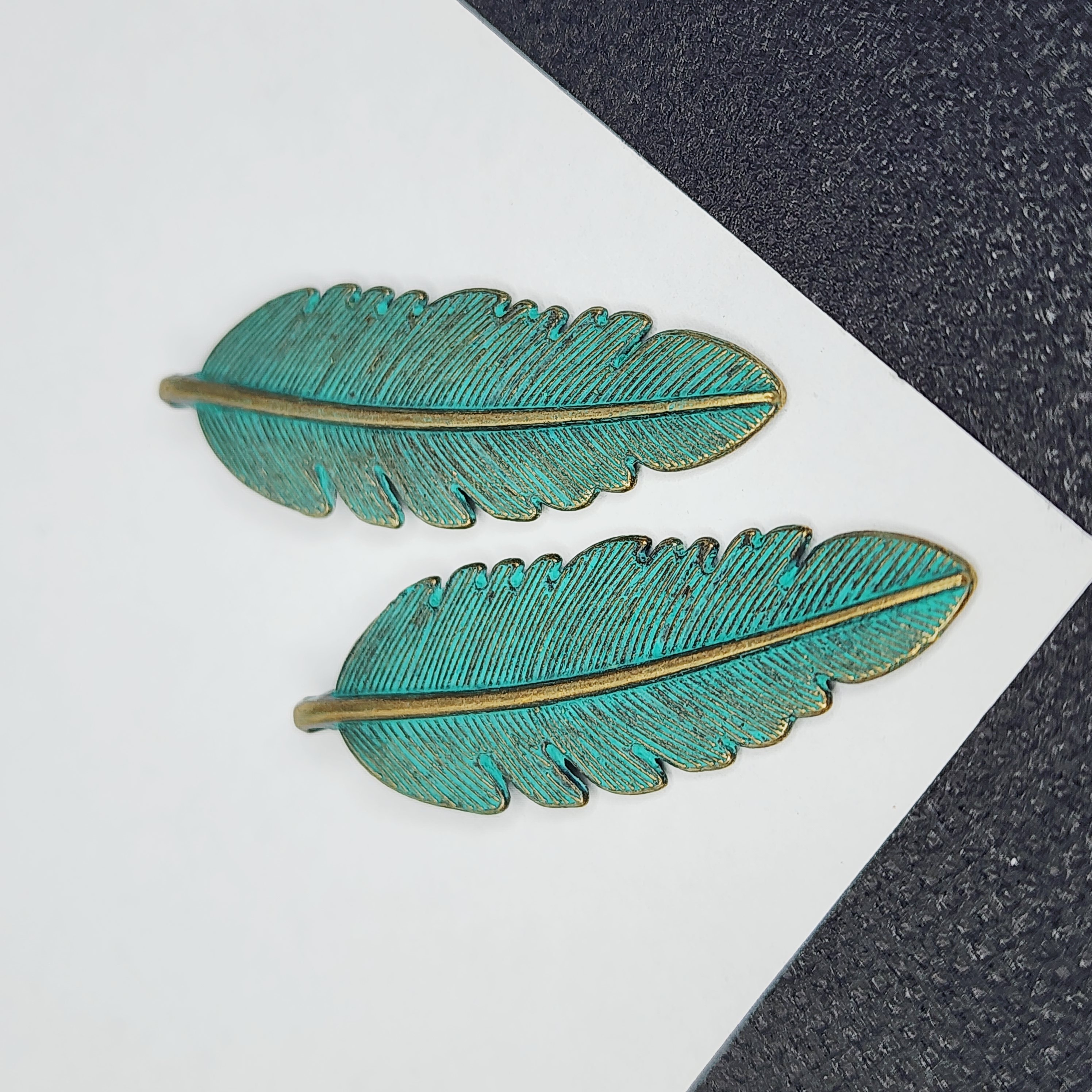 Подвеска лист, бирюзовая патина, размер 45×19 мм