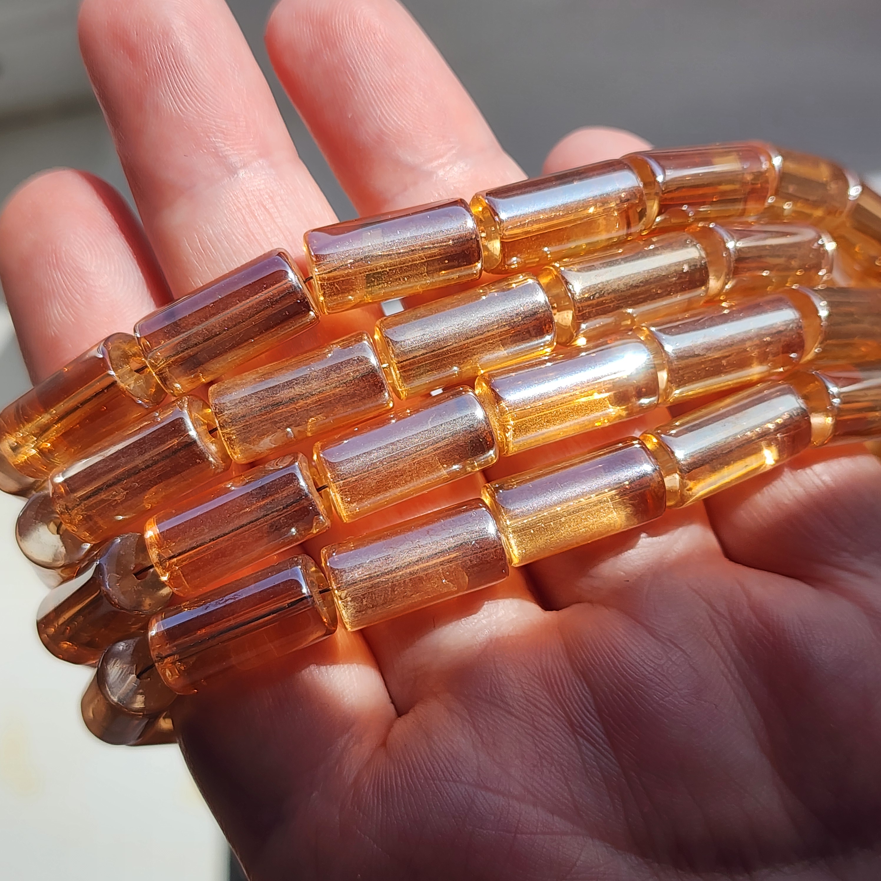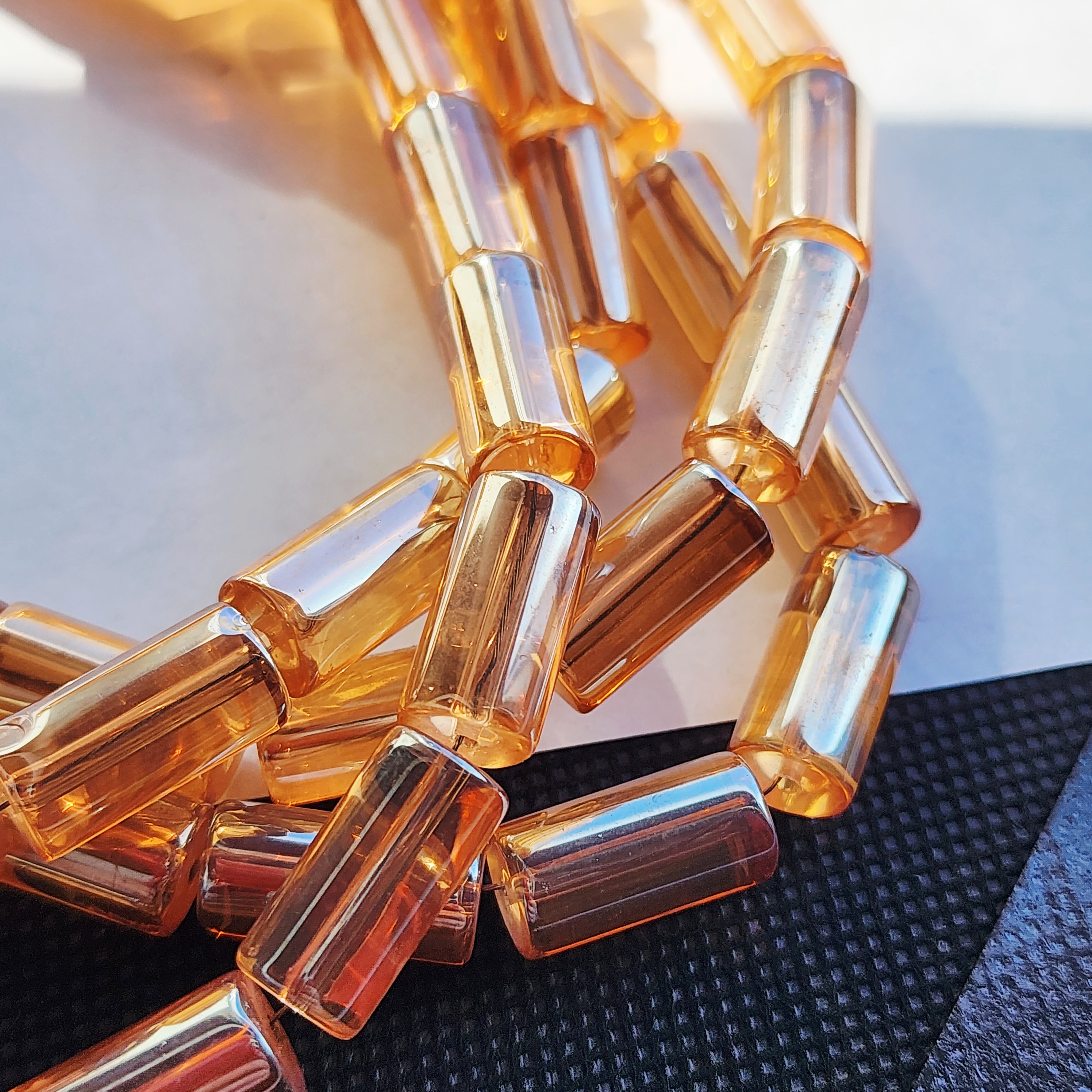 Яркие, позитивные стеклянные трубочки, в оранжево - янтарном оттенке, размер 16×8мм