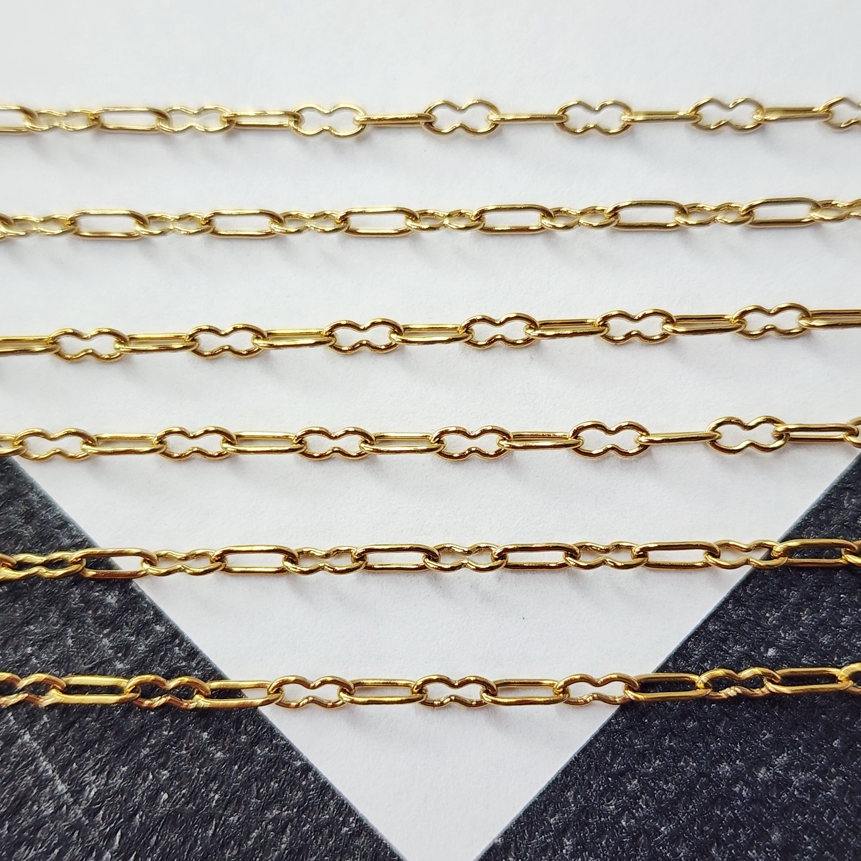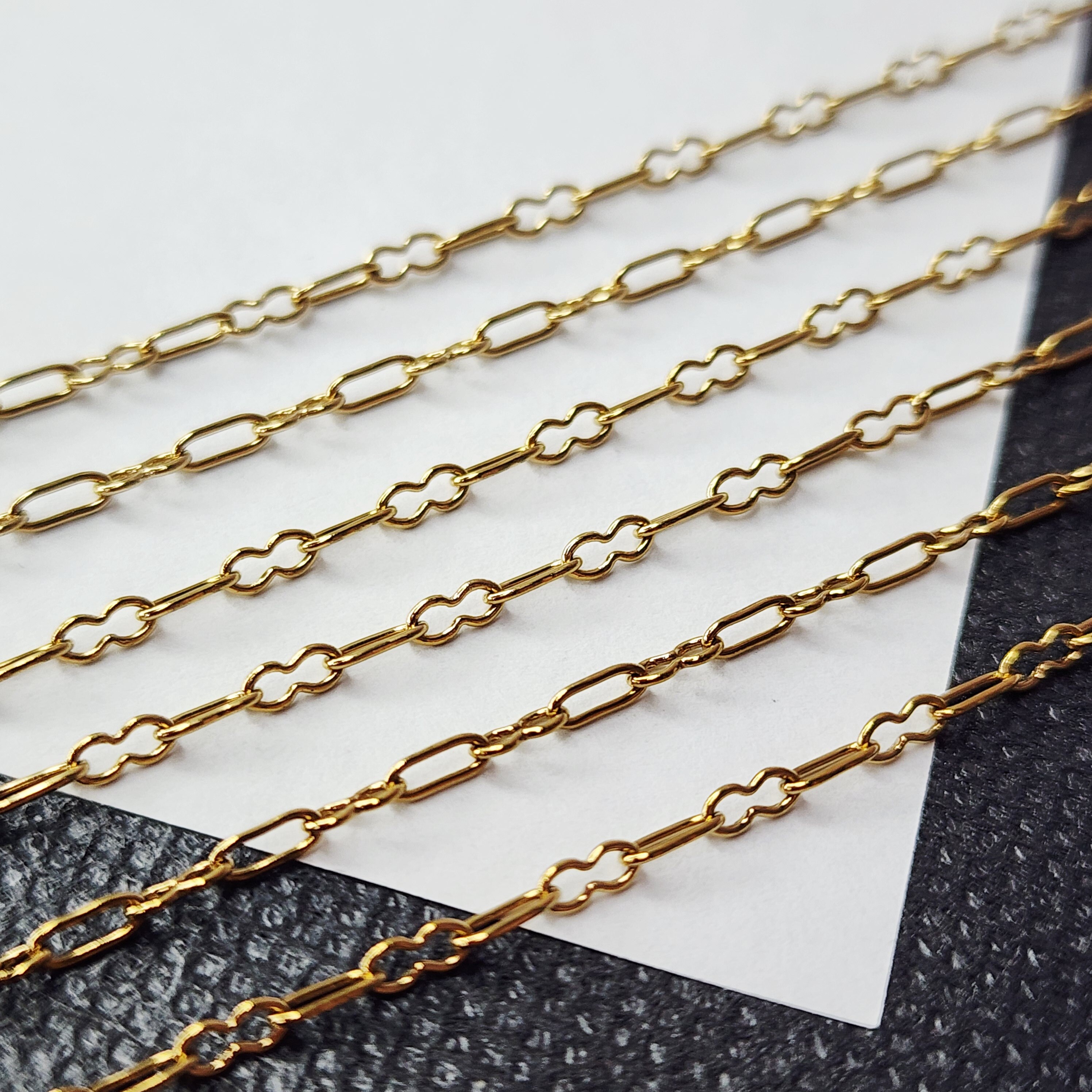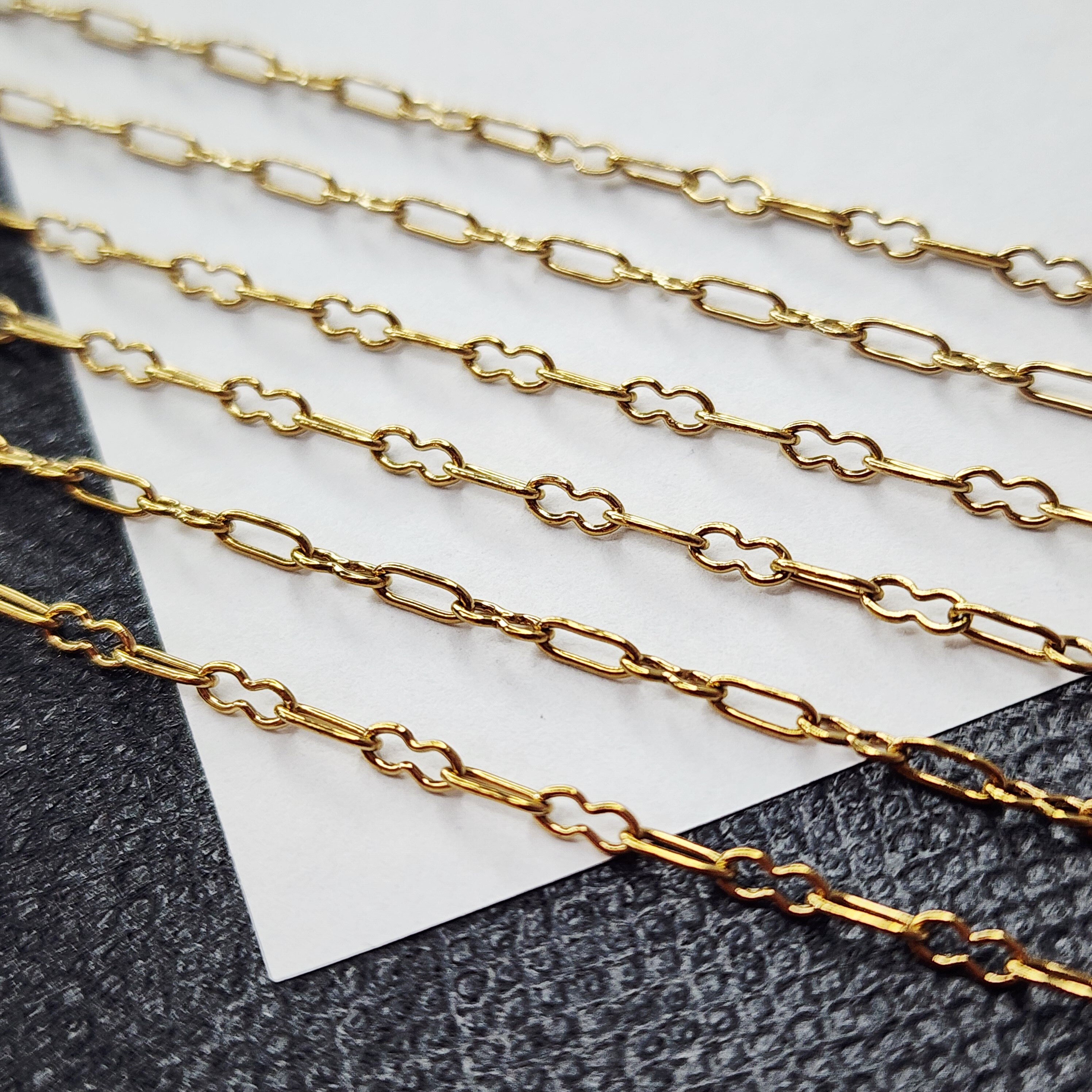 Цепочка тонкая с фантазийным плетением, размер звеньев 2.1×4.6мм и 1.8×5мм, паяная. Идеально подойдет для создания украшений ручной работы