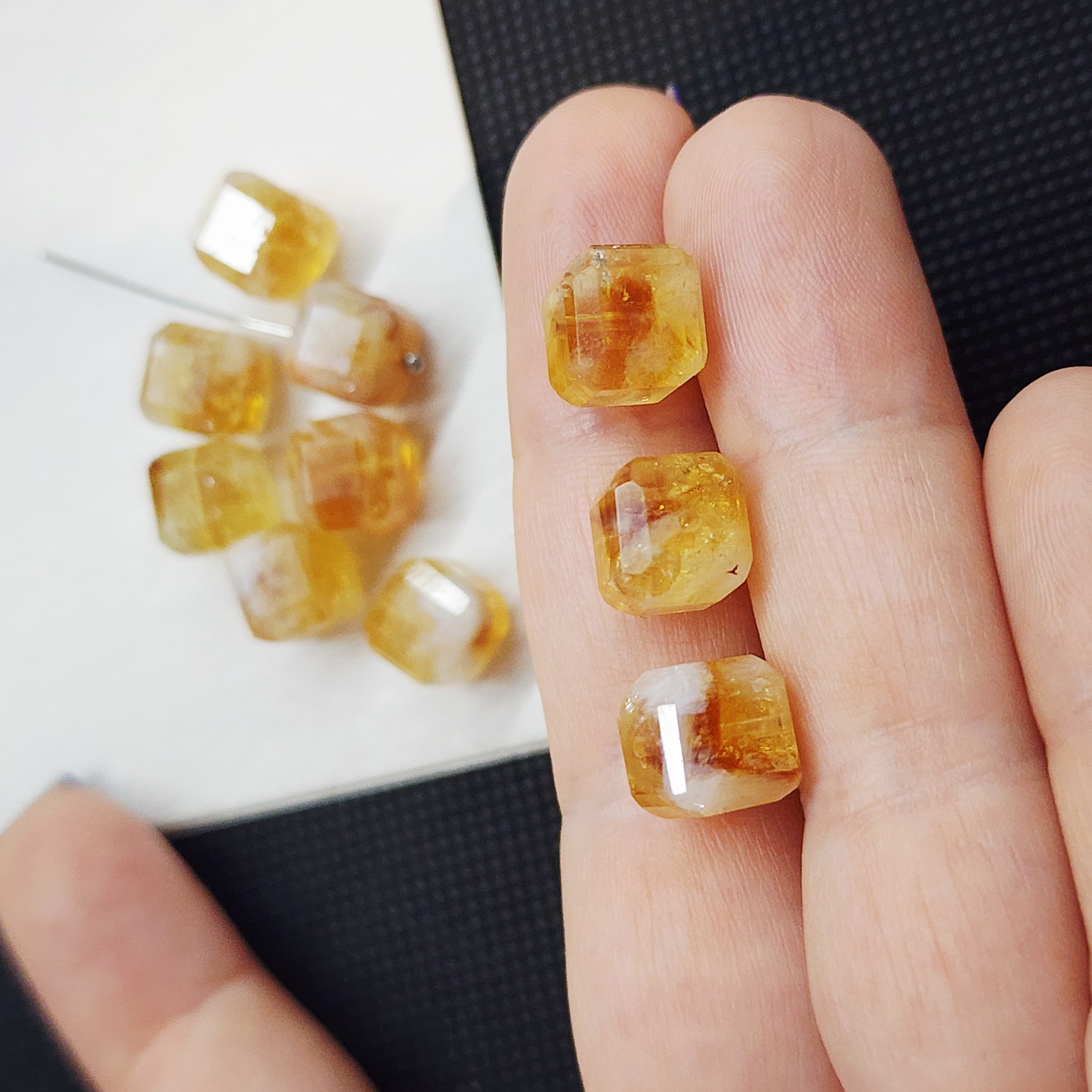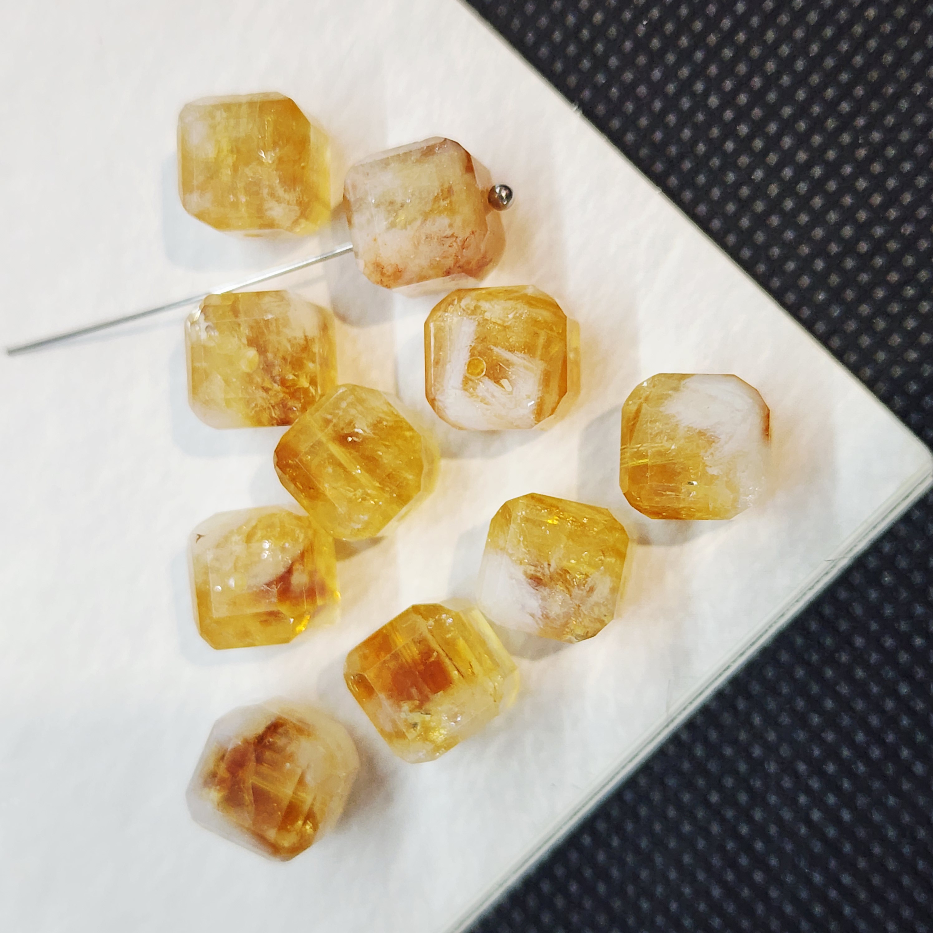 Бусина кубик, натуральный цитрин, огранка, облагорожен, размер 9×10мм