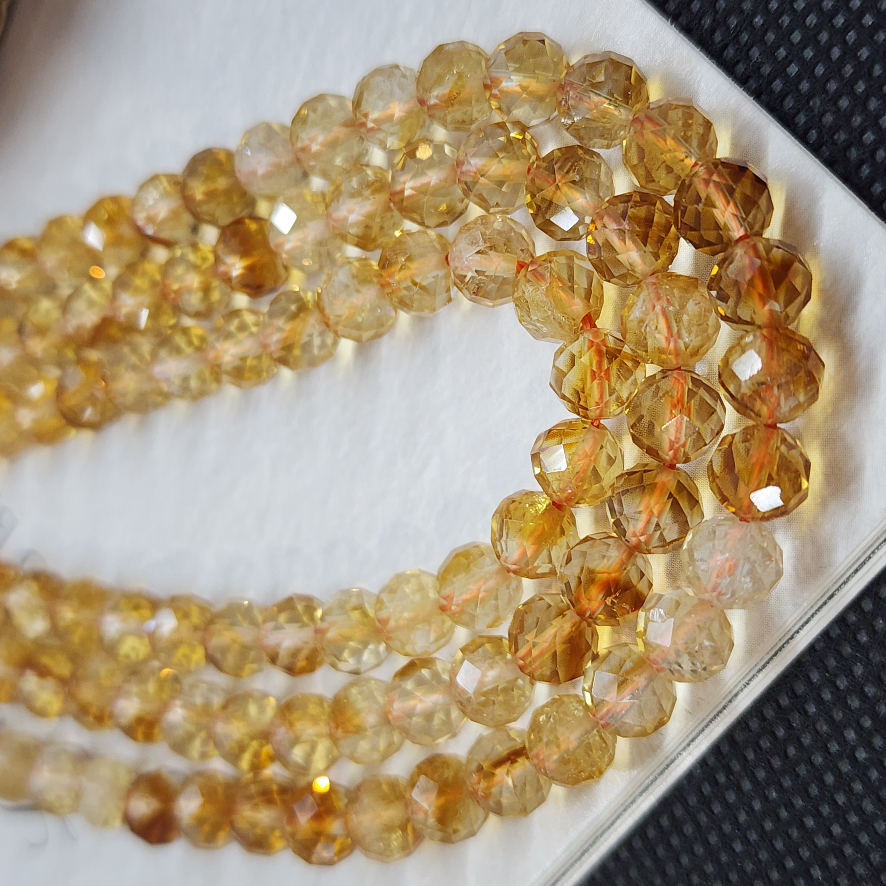 Цитрин - жёлтая разновидность кварца, любые бусины как правило облагорожены путём нагрева, в основном из аметиста. Это повсеместная практика и норма для этого минерала - поэтому геммологически уместно, можно и нужно называть его цитрином, естественно понимая происхождение цвета конкретного образца