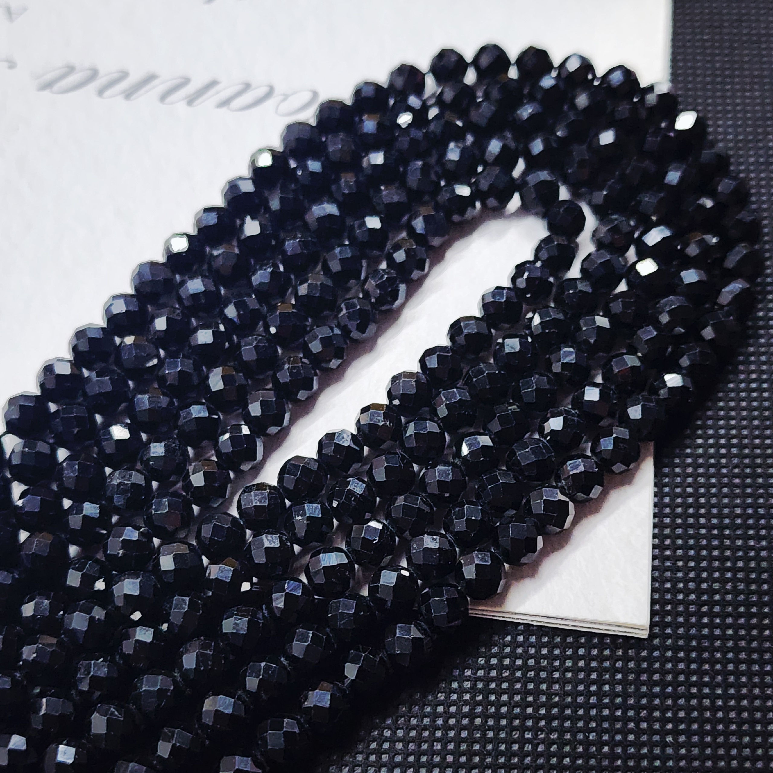 Природный чёрный турмалин, форма шар, огранка, средний размер 6 - 6.3 мм