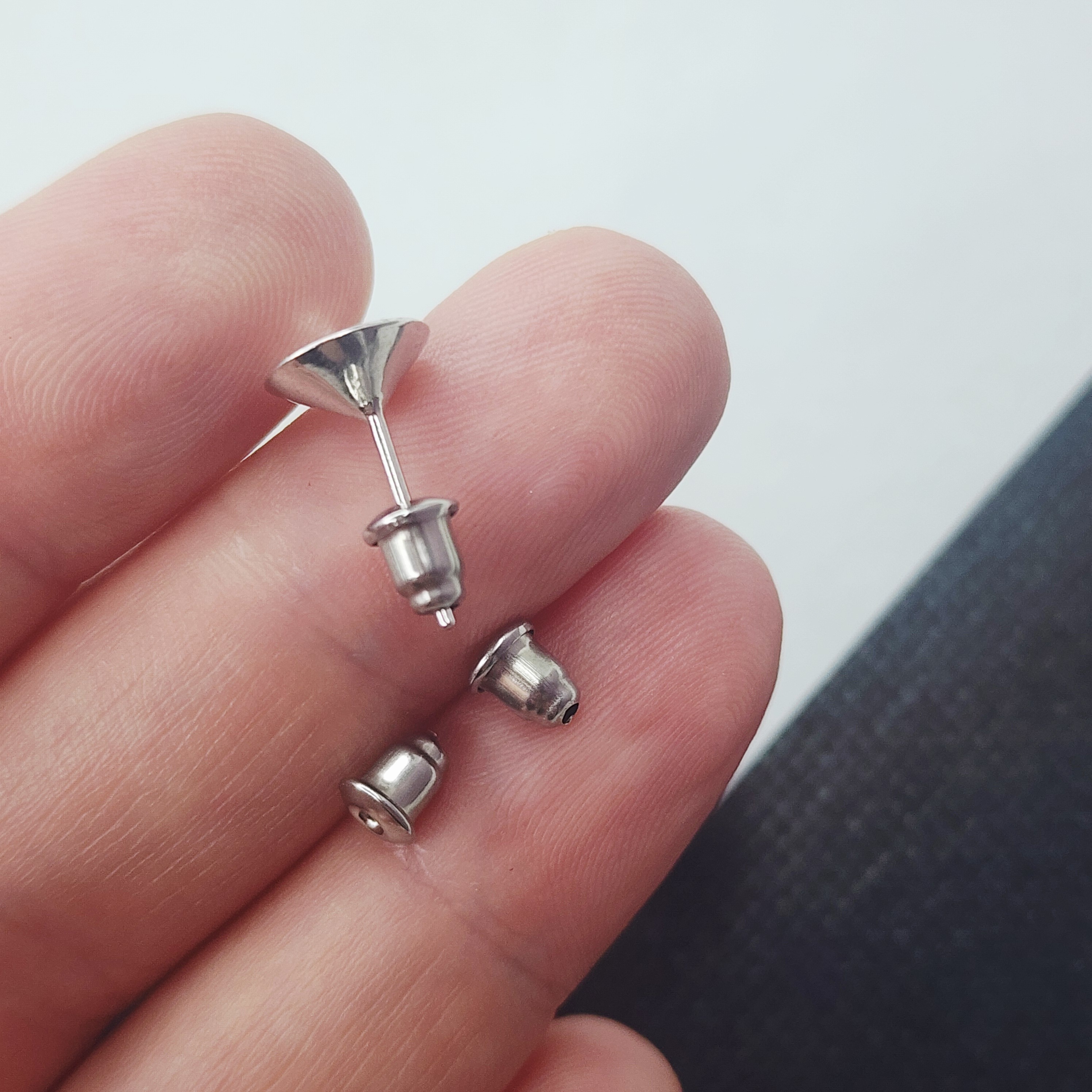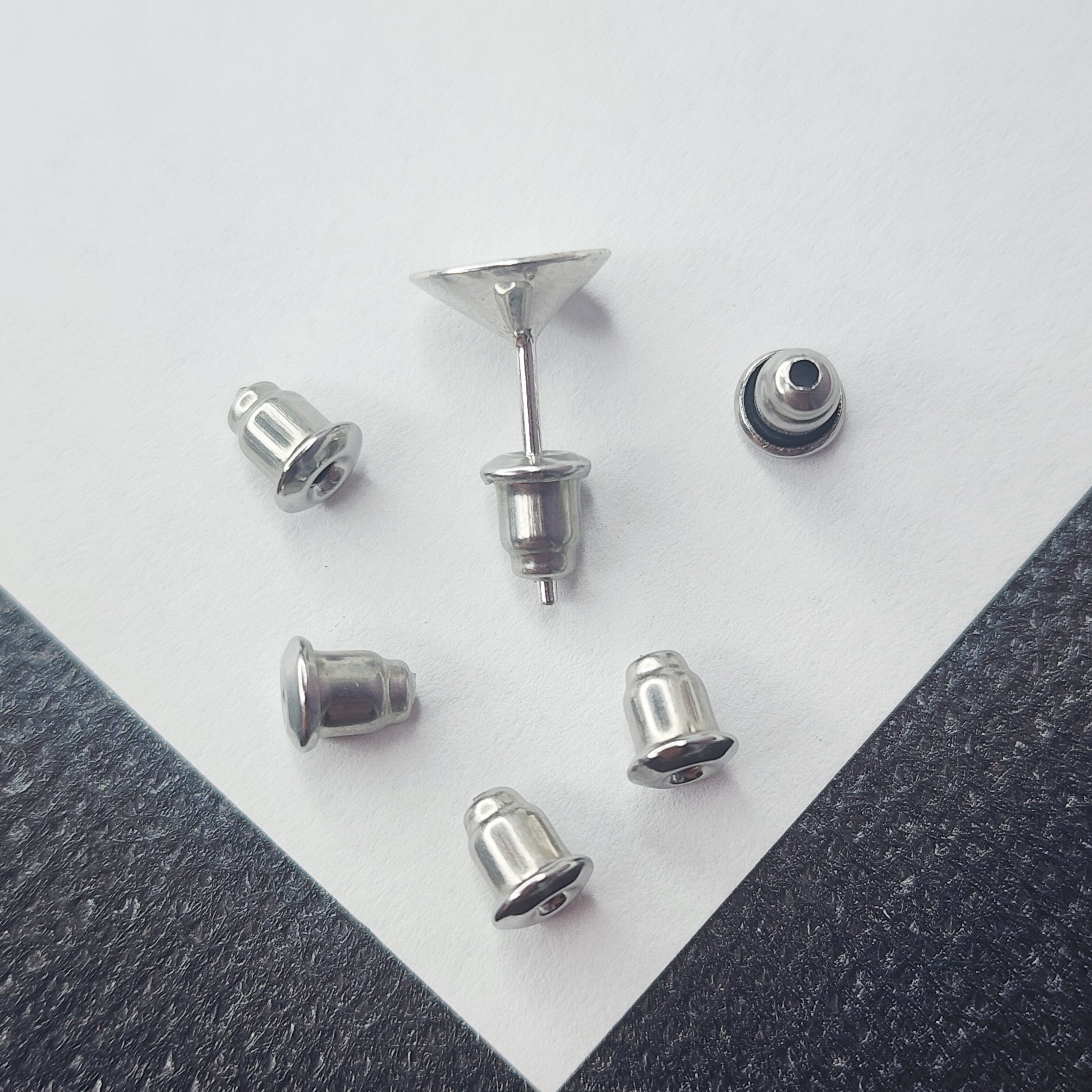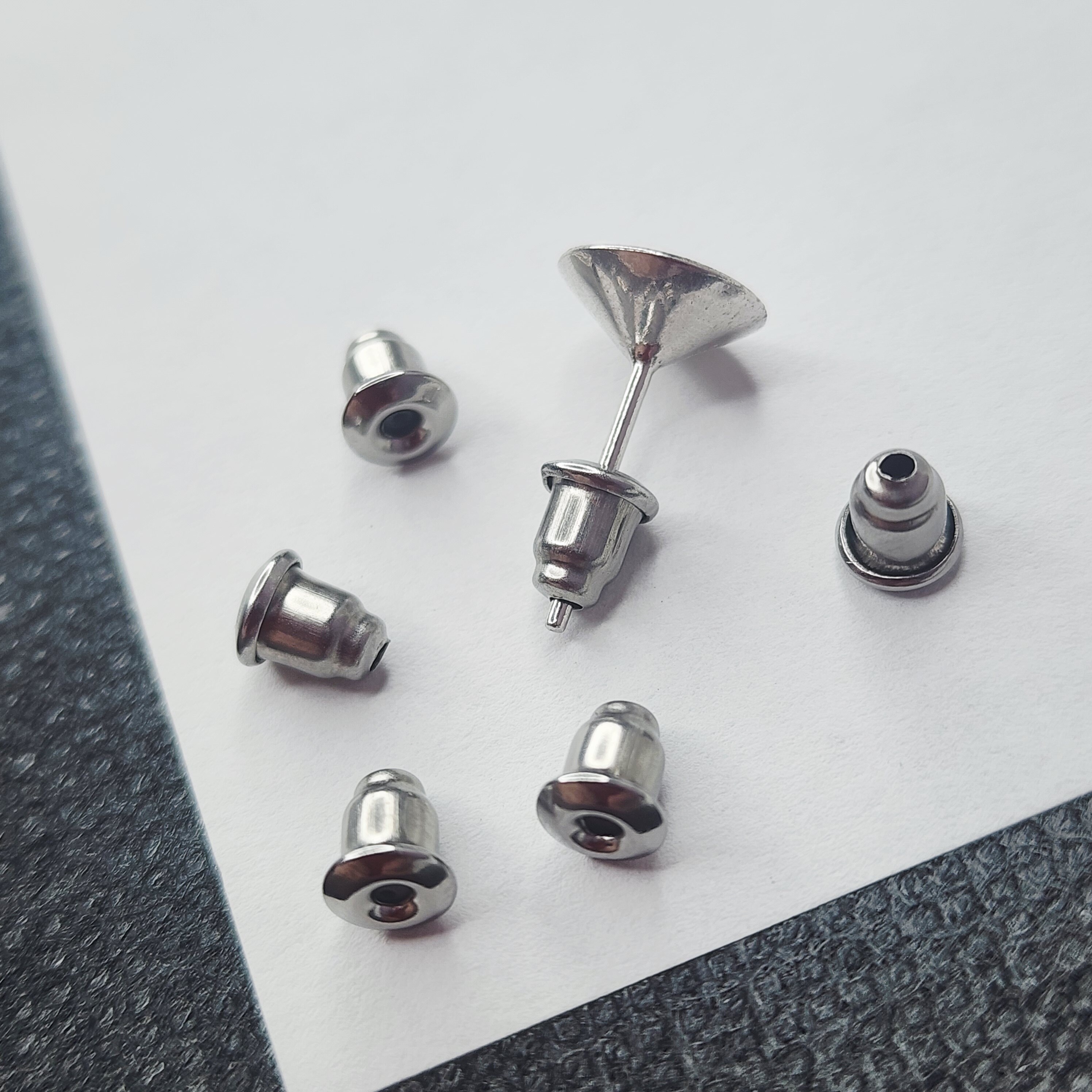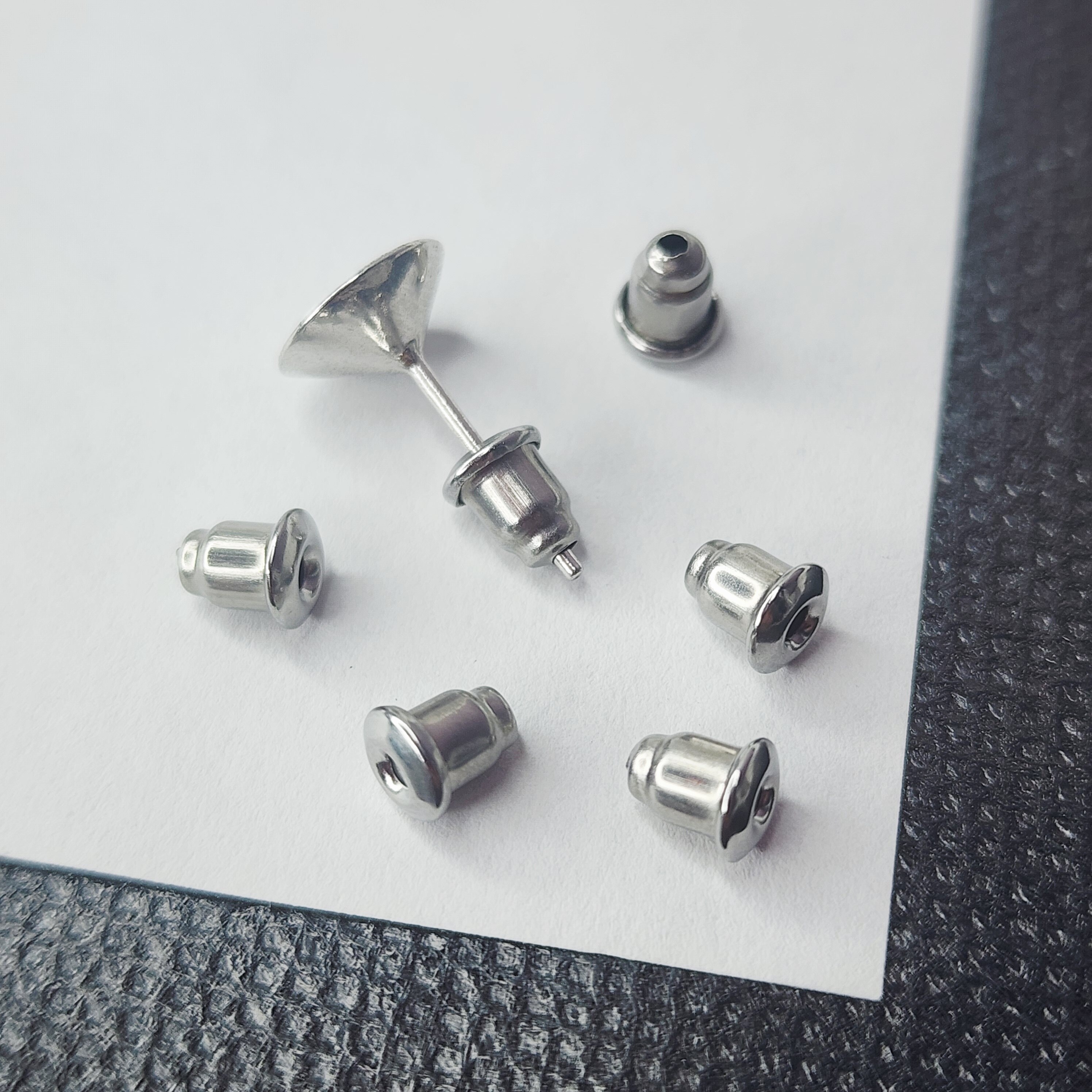 Стальные заглушки для пусет, удобные, универсальные и надежные, с силиконом внутри для лучшей сцепки и защиты штырька самой пусеты, размер 5×4.5мм